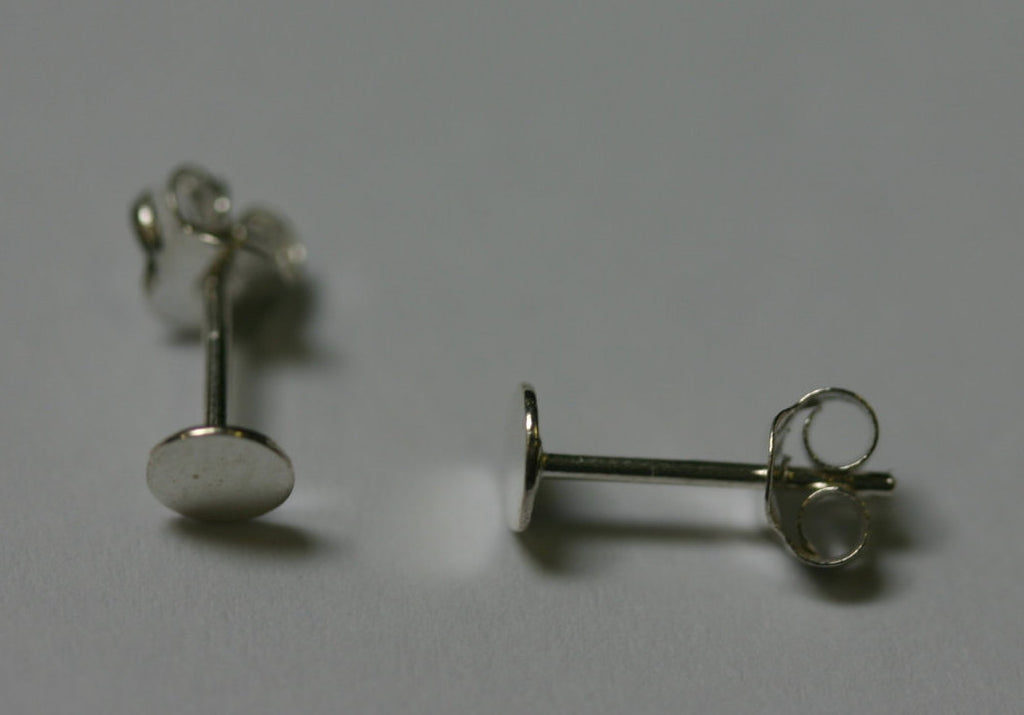 1 pair 4mm Sterling Silver Solid 925 Flat Pad Post Stud Earrings with Ear nuts