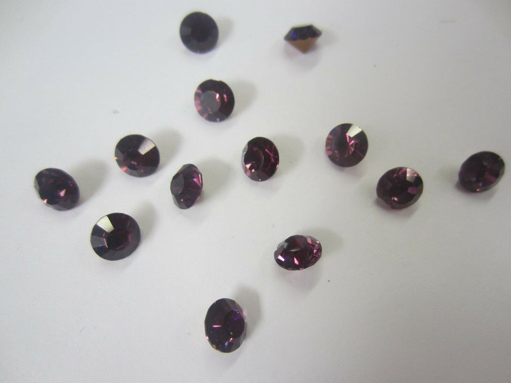 Description: AB Glass Rhinestones Amethyst color faceted foiled pointed back. Great for making your jewelry.