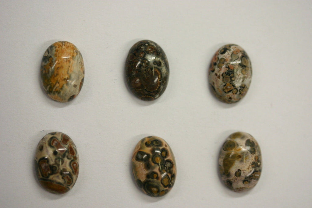 Description: 10pcs Natural Leopardskin Jasper High Quality Oval cabochons. Gemstones will not be the actual pictures and might be in different color shades but all are high quality. Pictures do not do justice with actual items. Actual items in high quality great color gemstones.