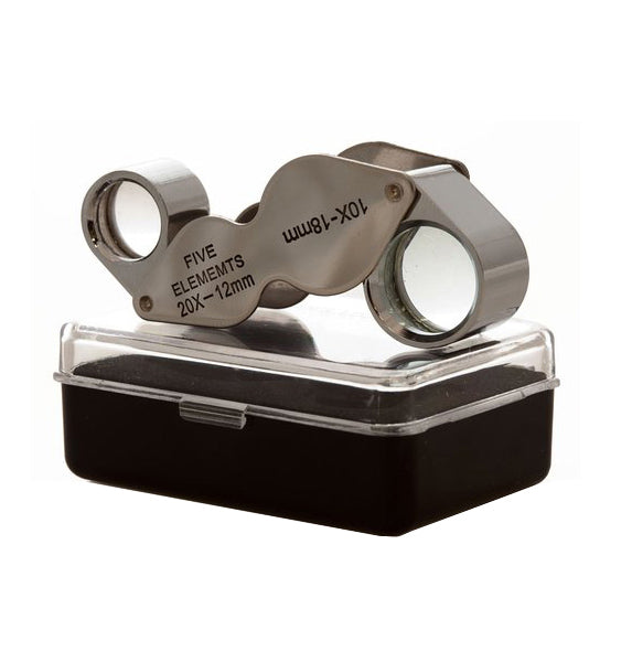 10x18mm and 20x12mm Dual Power Magnification Chrome Body Jewelers Loupe
