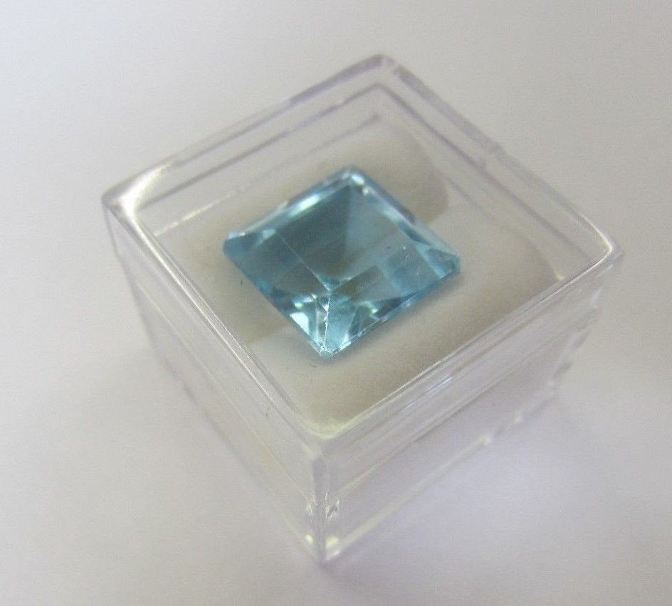 11ct 12mm Faceted Princess Cut Natural Swiss Blue Topaz Loose Gemstone FREE Gem Jar