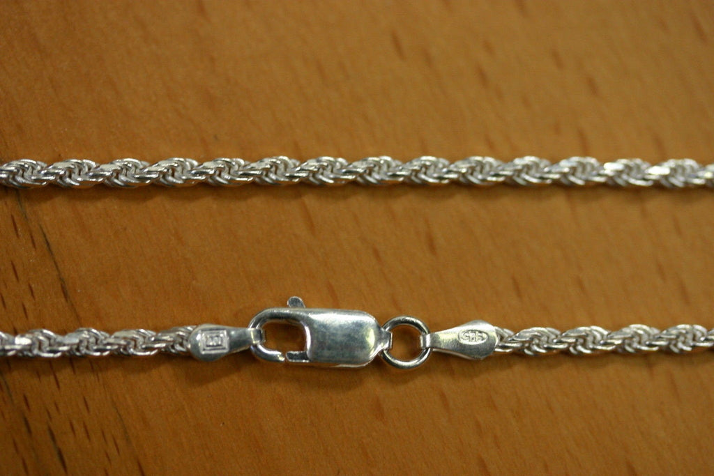 18" 2.2mm Solid Sterling Silver Italian Made Diamond cut Rope Chain Necklace Made in Italy Stamped 925