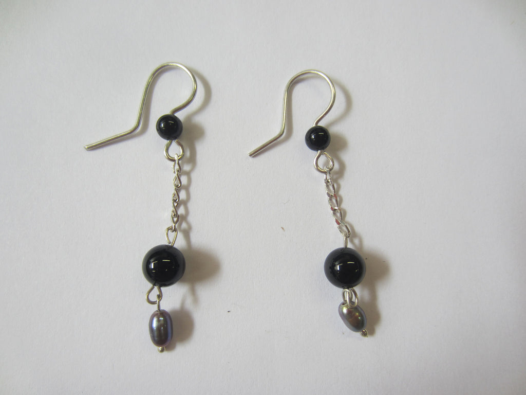 Item: Sterling Silver with Black Onyx and Pearls Dangling Earrings