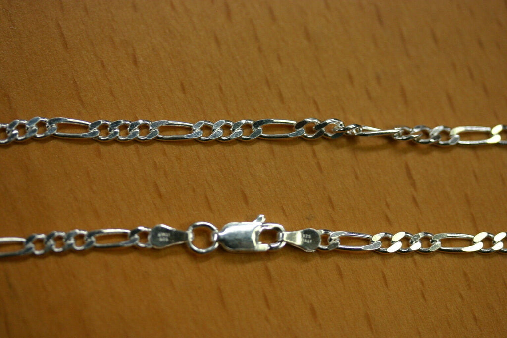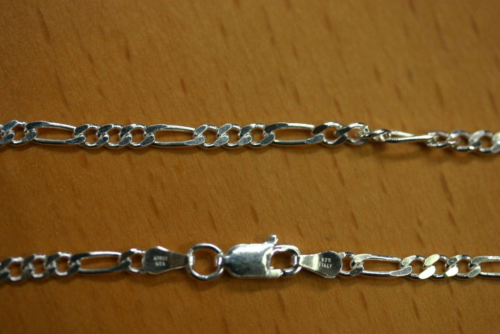 2.9mm Solid Sterling Silver Italian Made 3+1 Figaro Chain Necklace Made in Italy 24" Stamped 925