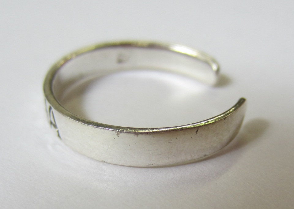 3.4mm Sterling Silver Adjustable Toe Ring ALOHA Design Oxidized Jewelry