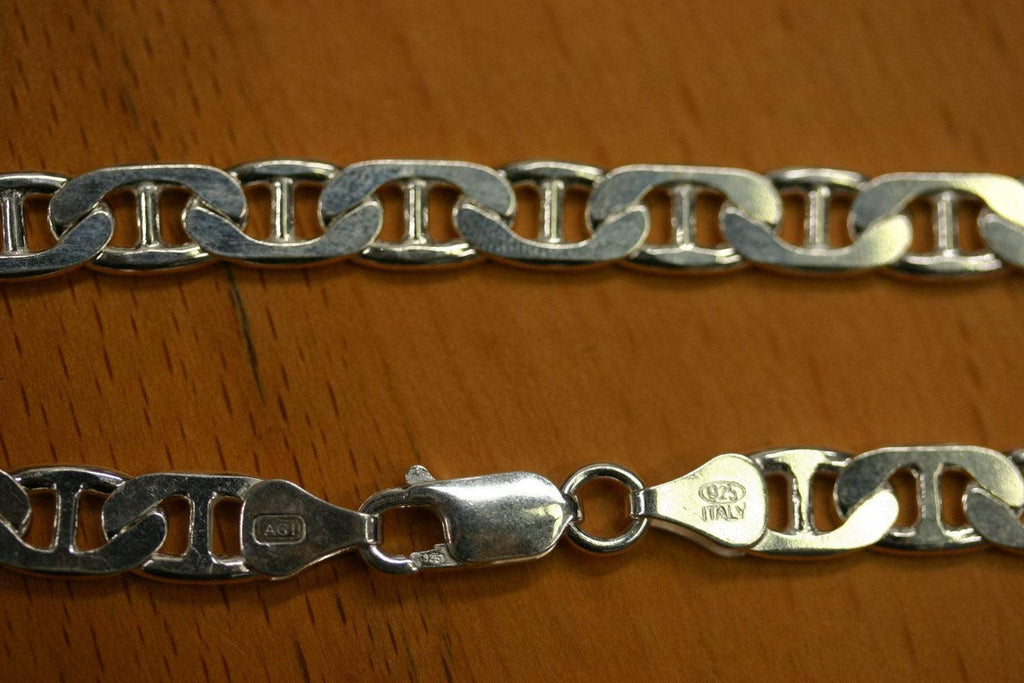 30" 5mm Solid Sterling Silver Italian Made Flat Marina Chain Necklace Made in Italy Stamped 925 Heavy Chain