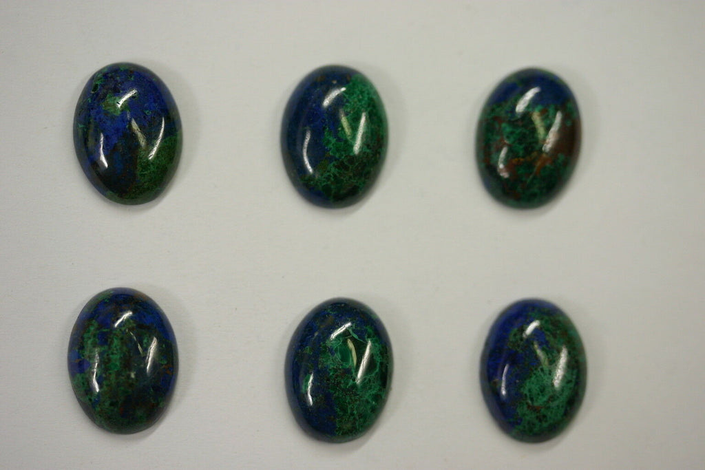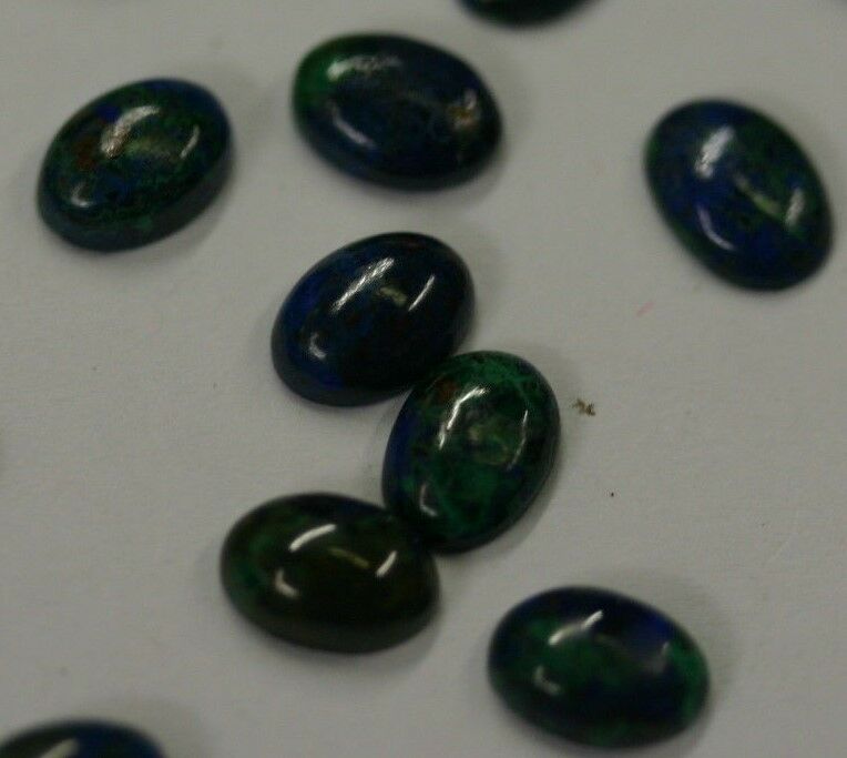 Description: Lot of 4 Azurite Malachite High Quality Calibrated Oval cabochons. Gemstones will not be the actual pictures and might be in different color shades but all are high quality. Pictures do not do justice from actual items. Actual items in great condition.