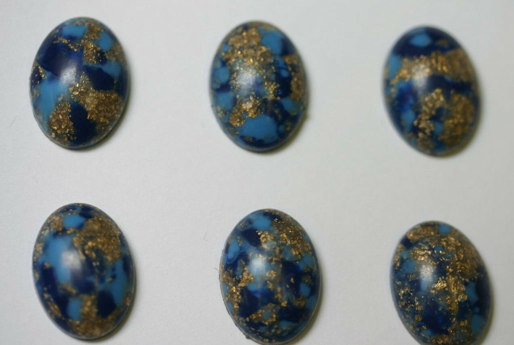 Description: Venetian Germany Sky Blue Navy Blue Gold Combination Color Cabochon. Great deal for 50pcs.