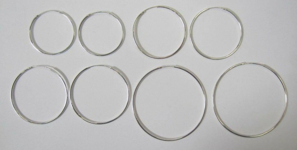 50mm x 1.2mm Solid .925 Sterling Silver Endless Hoop Earrings Thin Round