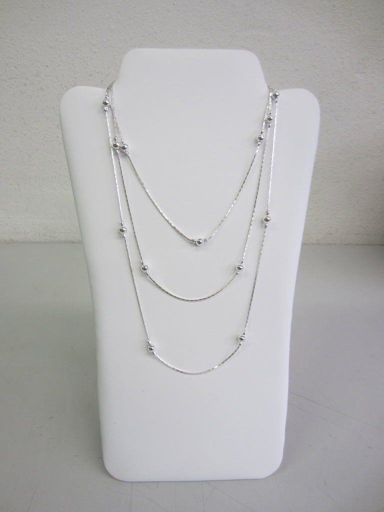 Description: Sterling Silver Multi Strand Bead Chain Necklace. Solid .925 Silver. High Quality Long Necklace.