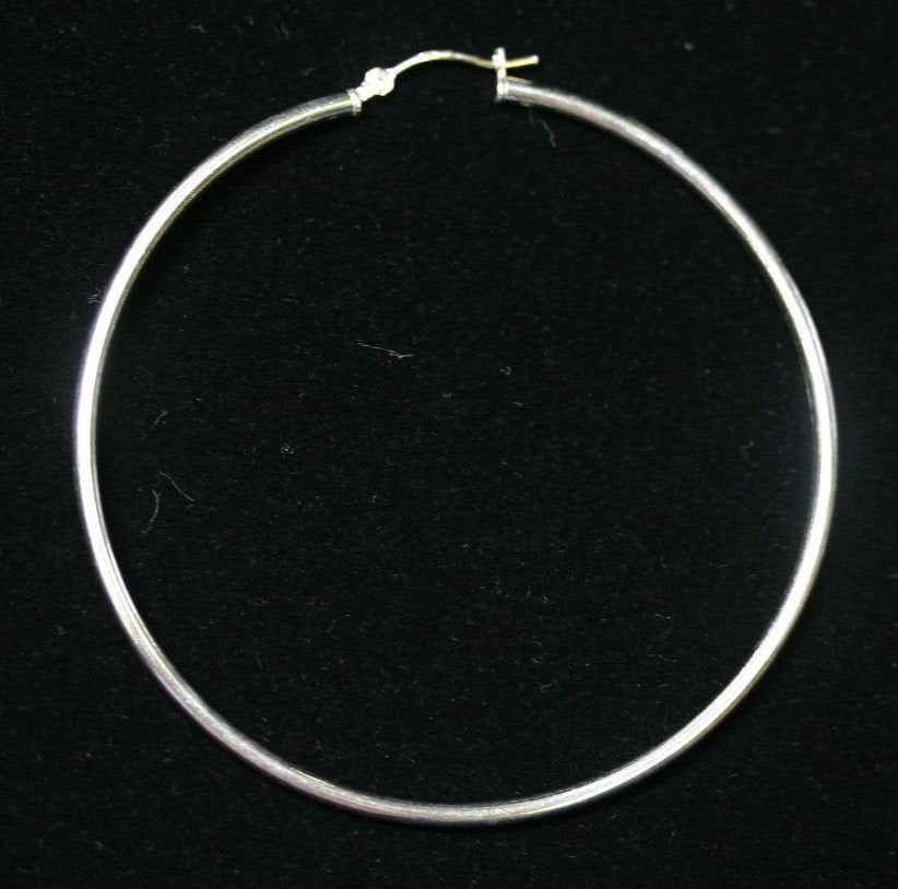 60mm 2mm Thickness Large Size Hoop Earrings Solid 925 Sterling Silver Hinged Hoop Earrings