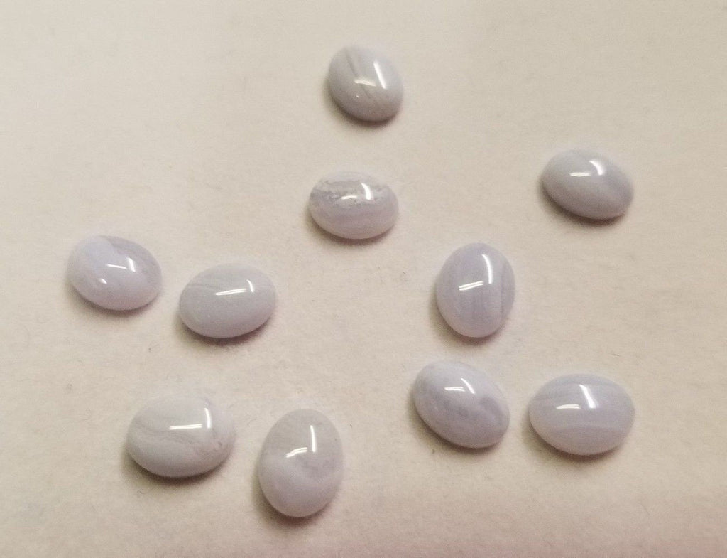 Description: Lot of 6 Blue Lace Agate High Quality Calibrated Cabochons. Gemstones will not be the actual pictures and might be in different color shades but all are high quality.