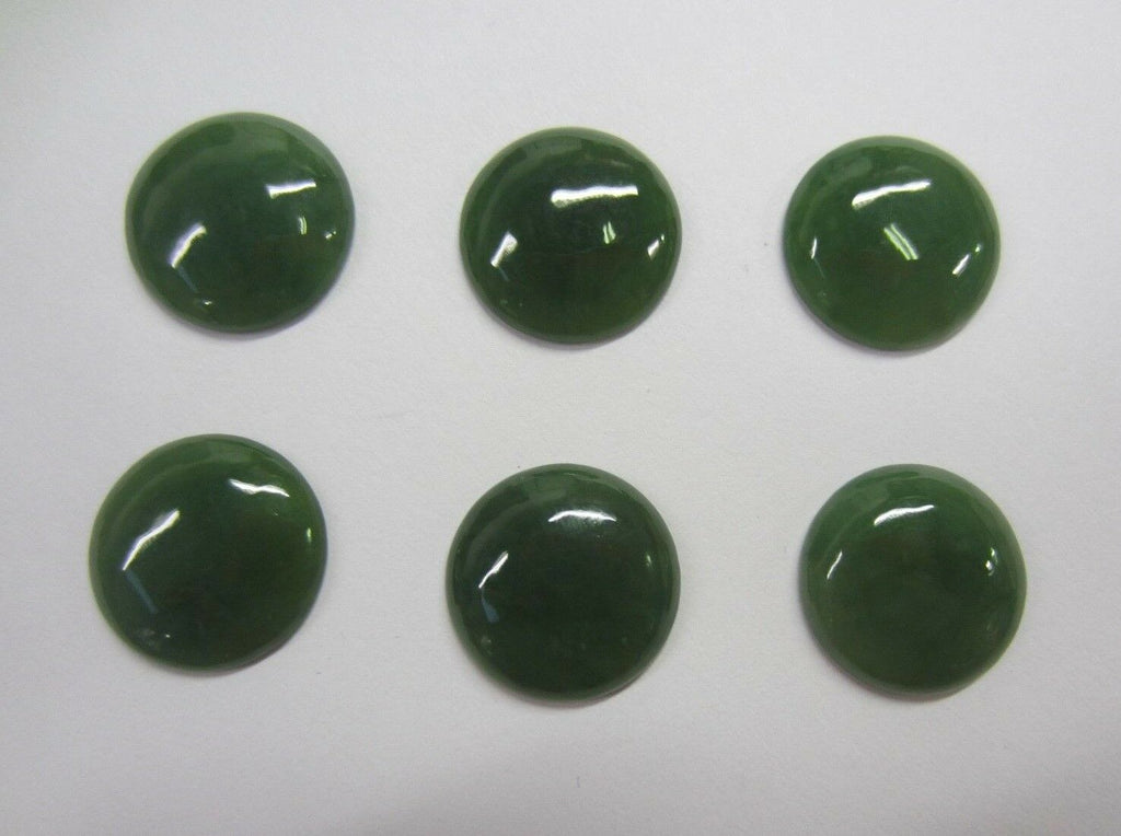 Description: Lot of 6 British Columbia Nephrite BC Jade High Quality Calibrated Round cabochons. Gemstones will not be the actual pictures and might be in different color shades but all are high quality.