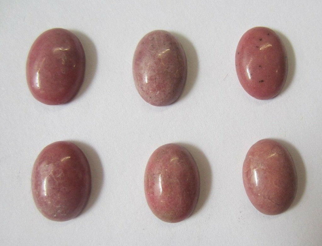 Description: Lot of 6 Natural Rhodonite High Quality Calibrated Oval Cabochons. Gemstones will not be the actual pictures and might be in different color shades but all are high quality.
