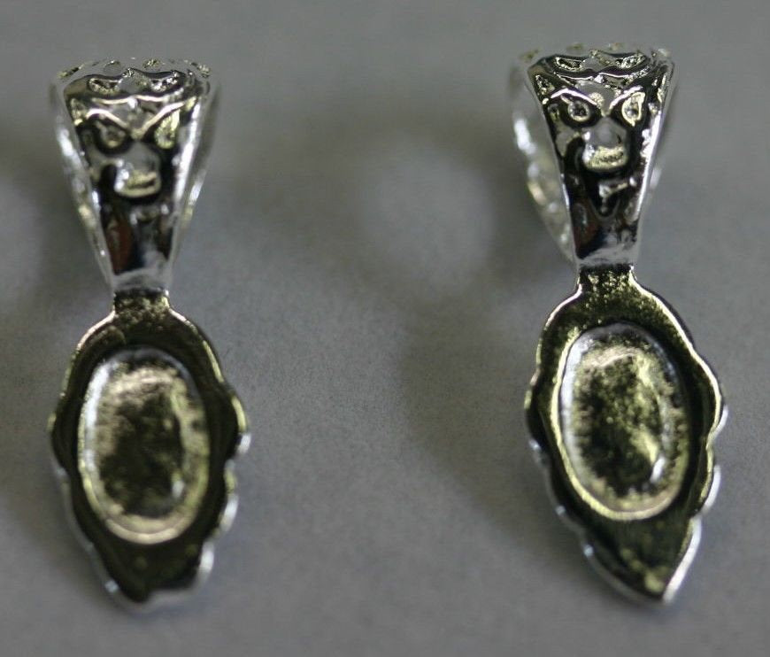 Description: 6pcs of Silver Plate Glue on Beaver Tail Filigree Bail. Cadmium Free, Nickel Free, Lead Free.