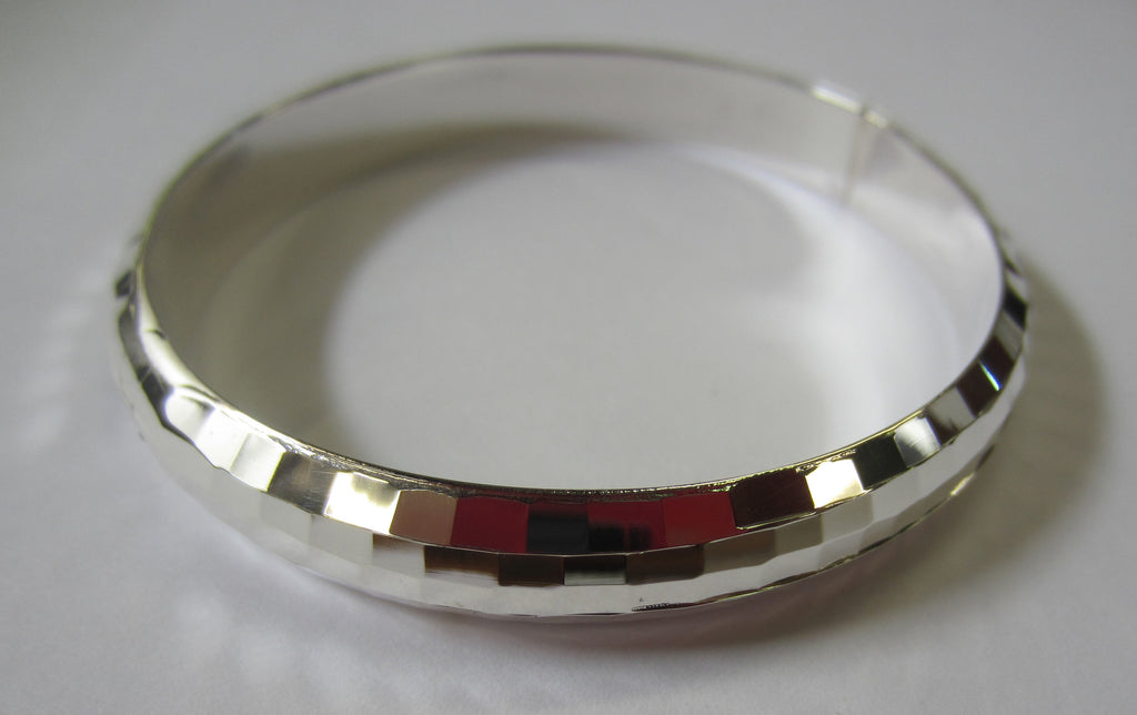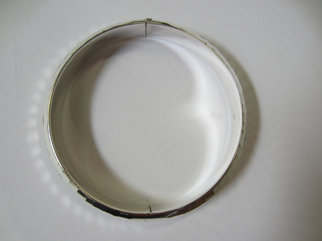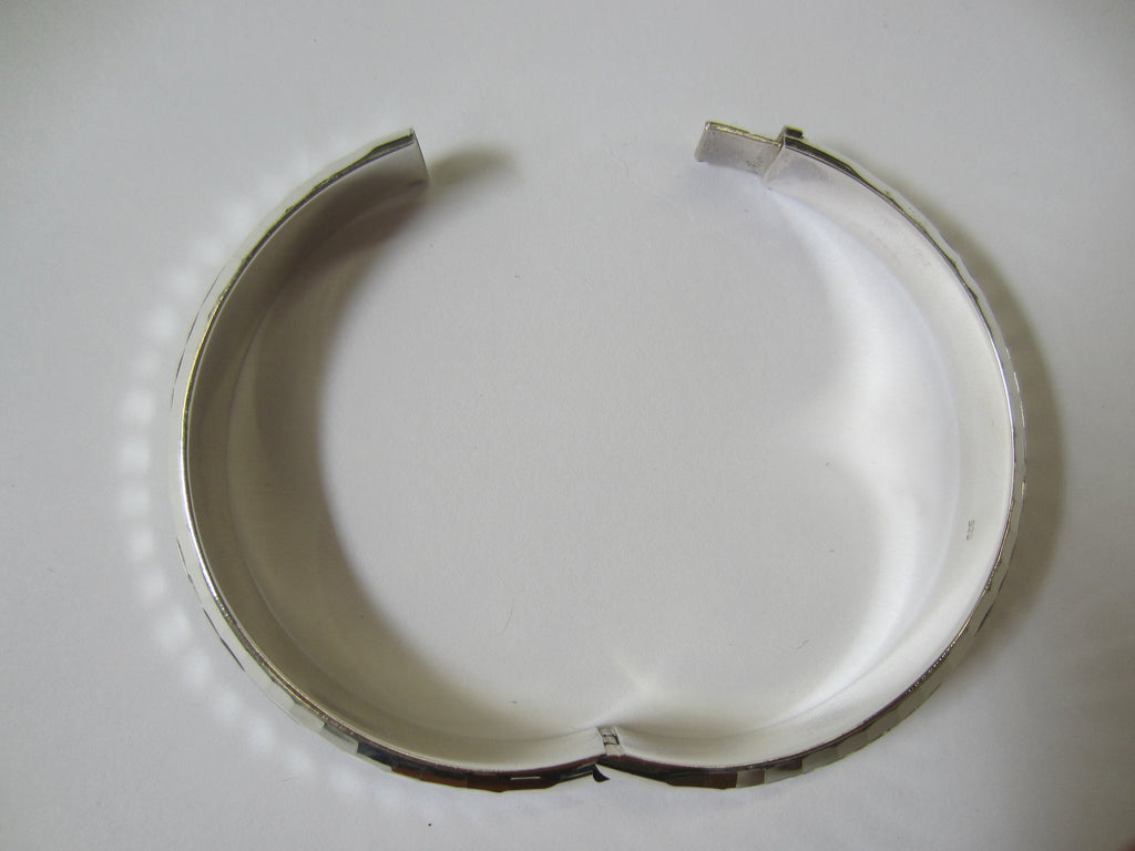 Description: Sterling Silver Handmade 9mm Hammered Style Bangle. Hand Polished with anti-tarnish coat to protect from tarnishing. Brand New in a plastic package. Excellent looking Beautiful Bangle.