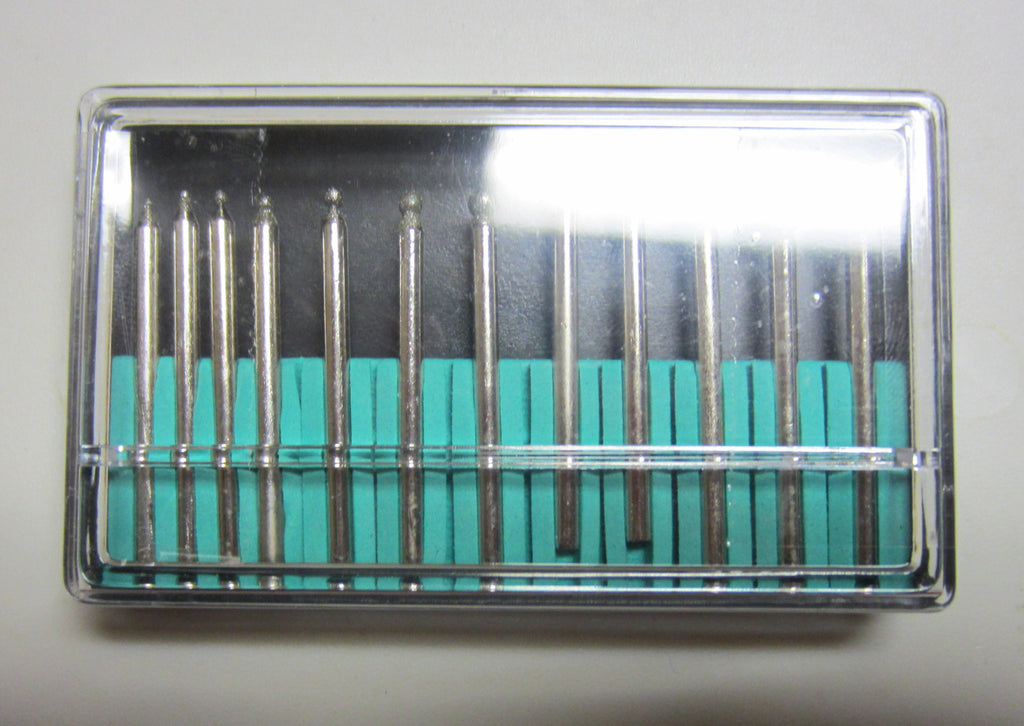 Diamond Burr Set for etching, fast cutting, filing, grinding, sanding, and shaping with detail and precision. You can use this on brick, ceramics, fiberglass, glass, gold, hardened steel, marble, metal, plastic, platinum, rock carbide, silver, stone, tile, wood, fiberglass, and any solid surface. All burrs in this set have a 1/8” shank diameter size, which allows them to be compatible with most die grinder and rotary tools. The burr shapes include ball, cone, cylinder, and more.