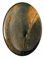 A cabochon is a gemstone which has been shaped and polished as opposed to faceted. The resulting form is usually a convex (rounded) obverse with a flat reverse. Cutting en cabochon (French: "in the manner of a cabochon") is usually applied to opaque gems, while faceting is usually applied to transparent stones. Hardness is also taken into account as softer gemstones with a hardness lower than 7 on the Mohs hardness scale are easily scratched, mainly by silicon dioxide in dust and grit. This would quickly make translucent gems unattractive—instead they are polished as cabochons, making the scratches less evident.