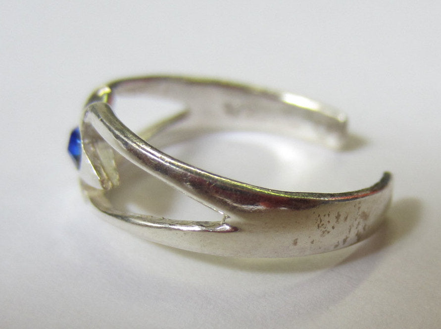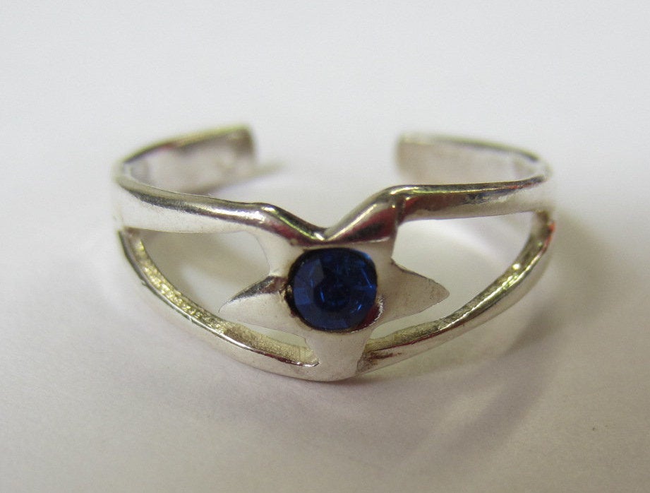 Description: Sterling Silver Adjustable Toe Ring. Solid 925. Blue CZ Star Design. High Quality. Great Adjustable Toe Ring.