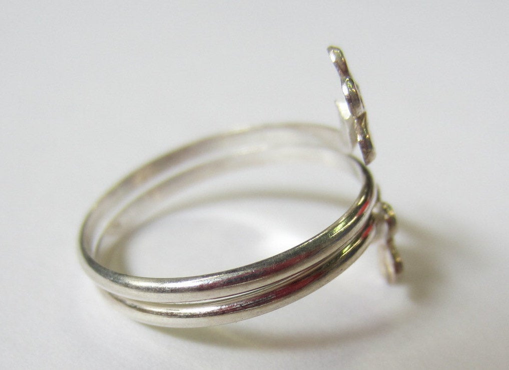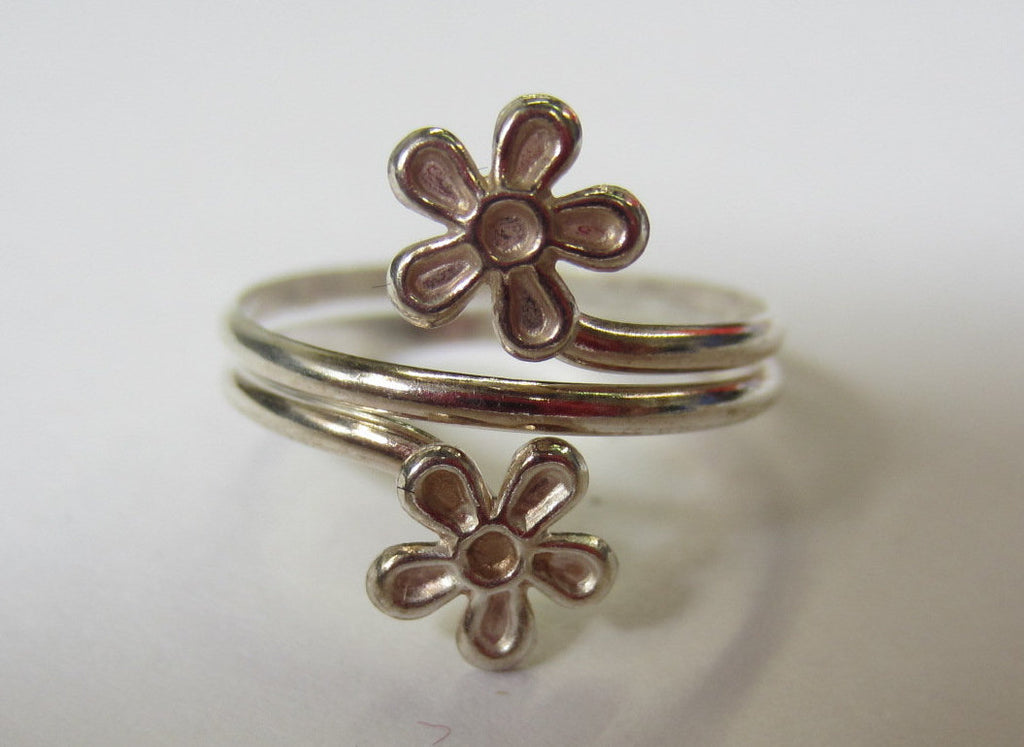 Description: Sterling Silver Adjustable Toe Ring. Solid 925. Double Ring like Split Ring with Flower Design. Great Adjustable Toe Ring.