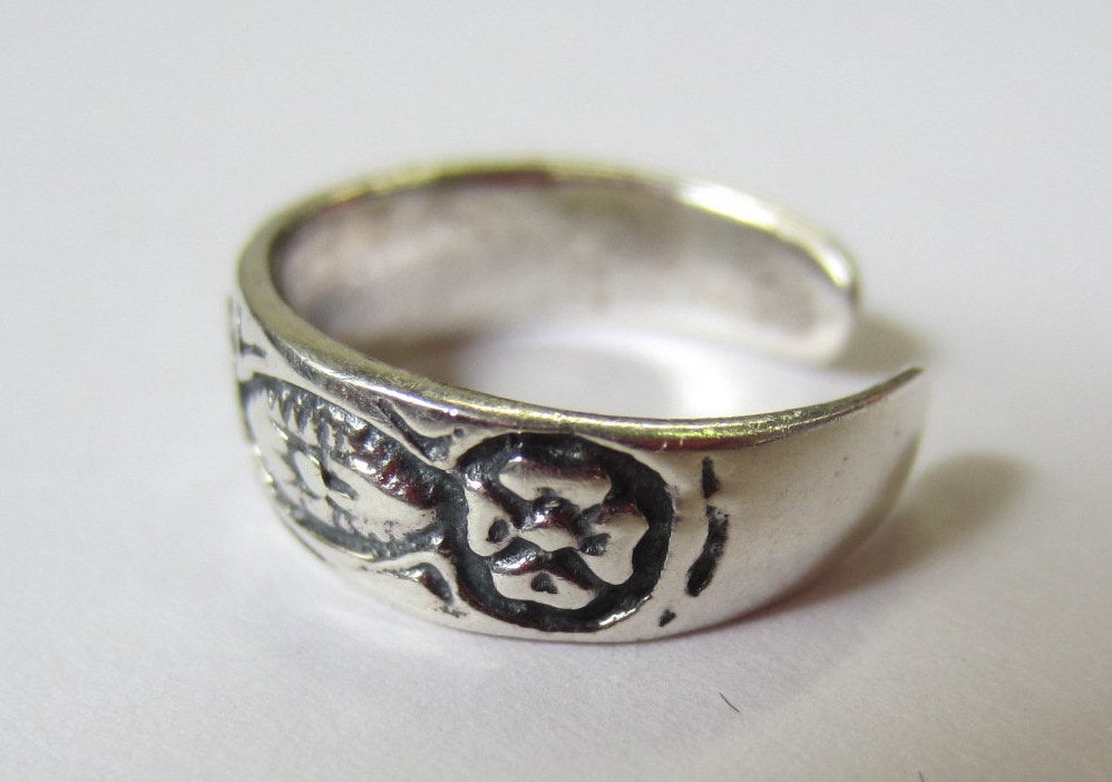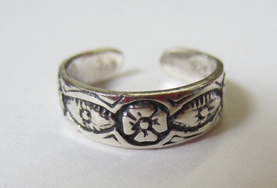 Description: Sterling Silver Adjustable Oxidized Toe Ring. Solid 925. Flowers Design. High Quality. Great Adjustable Toe Ring.