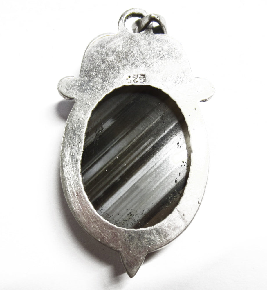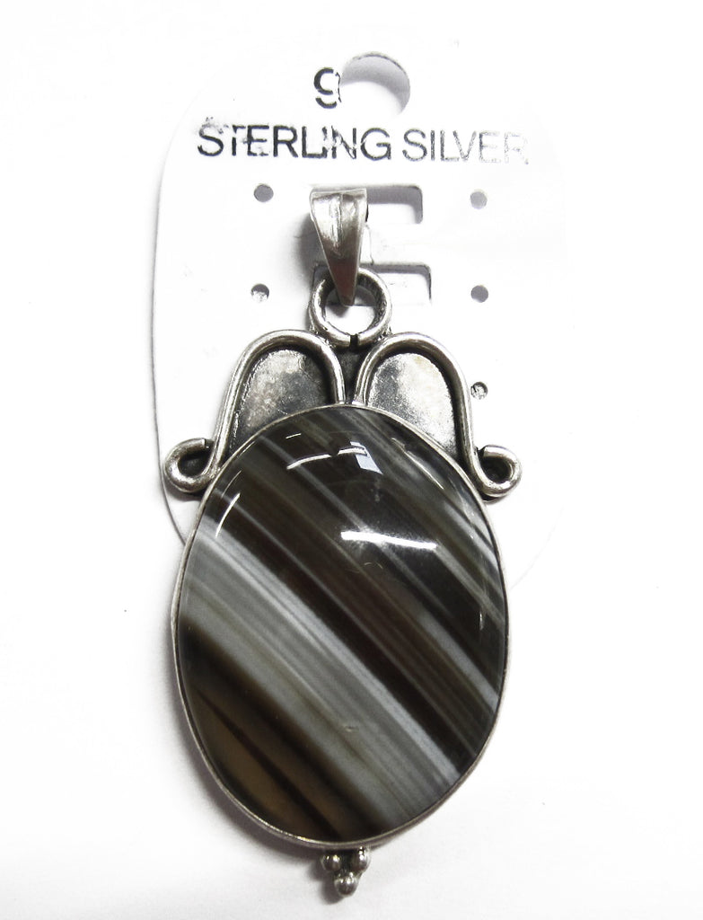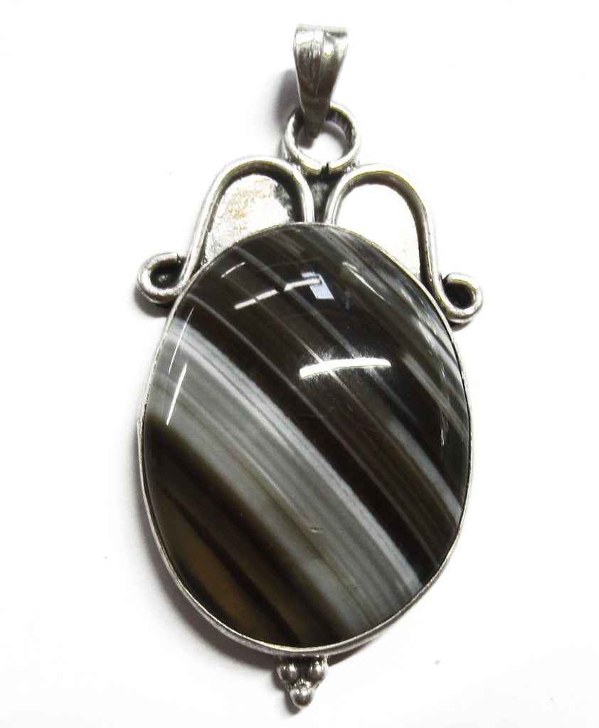 Item:              Solid 925 Sterling Silver Pendant Oval Botswana Agate Cabochon