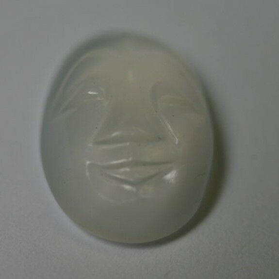 Description:  Natural Oval Carved Face Moonstone Cabochon.  It weighs 4.5ct.  It is a RARE kind of moonstone.