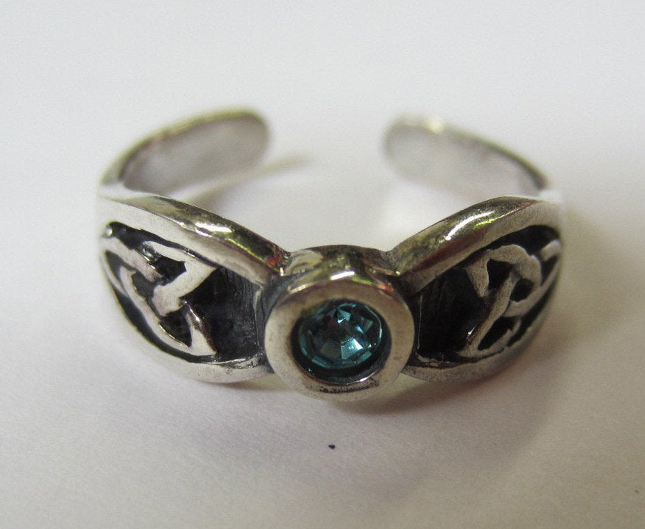 Description: Sterling Silver Adjustable Toe Ring. Solid 925. Celtic Design with Blue CZ Stone. High Quality. Great Adjustable Toe Ring.
