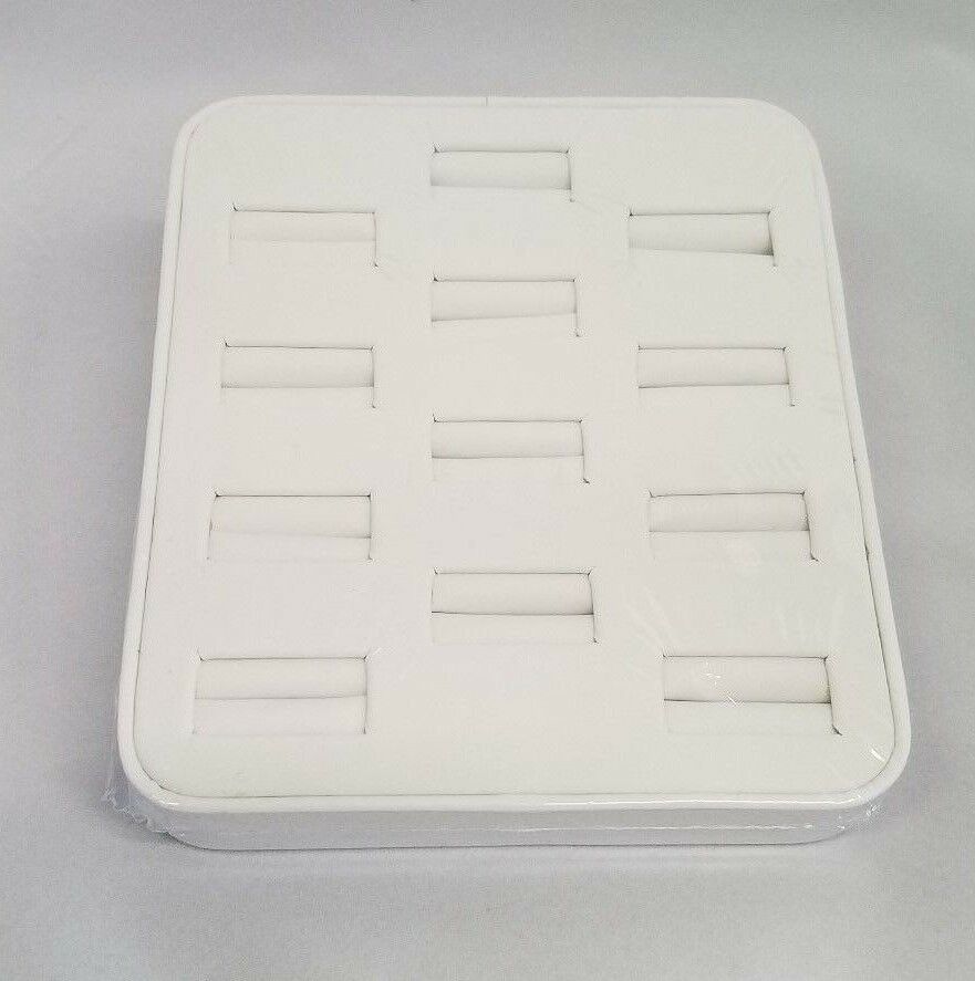 12-Slot Ring Holder Display White Faux Leather Brand New