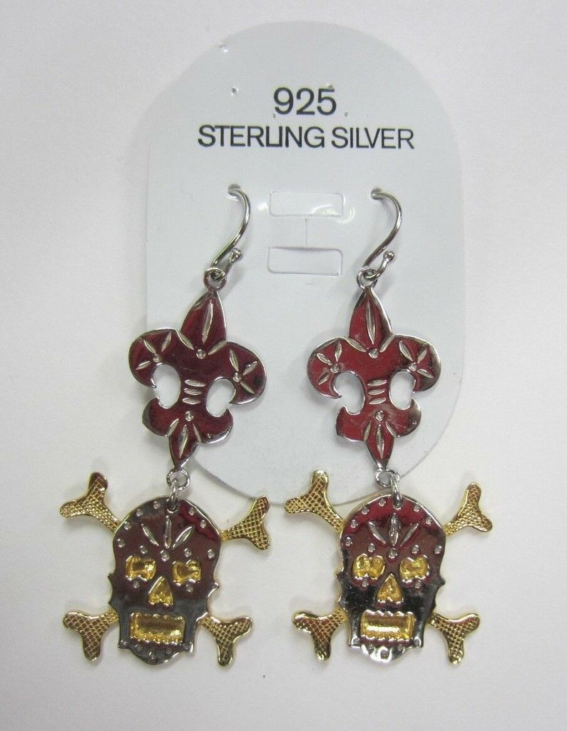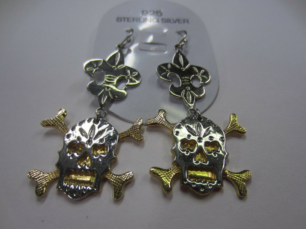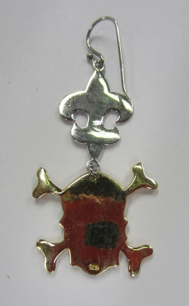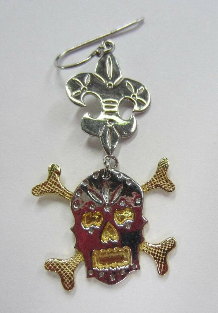 Solid 925 Sterling Silver and Vermeil Skull Dangling Earrings Big Fancy Jewelry