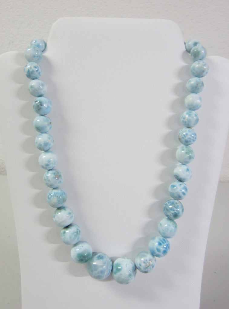 Round Beads Necklace from 10mm to 20mm sizes. High Grade Larimar Necklace. N3