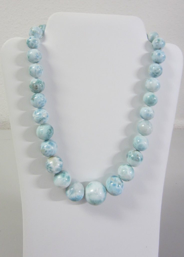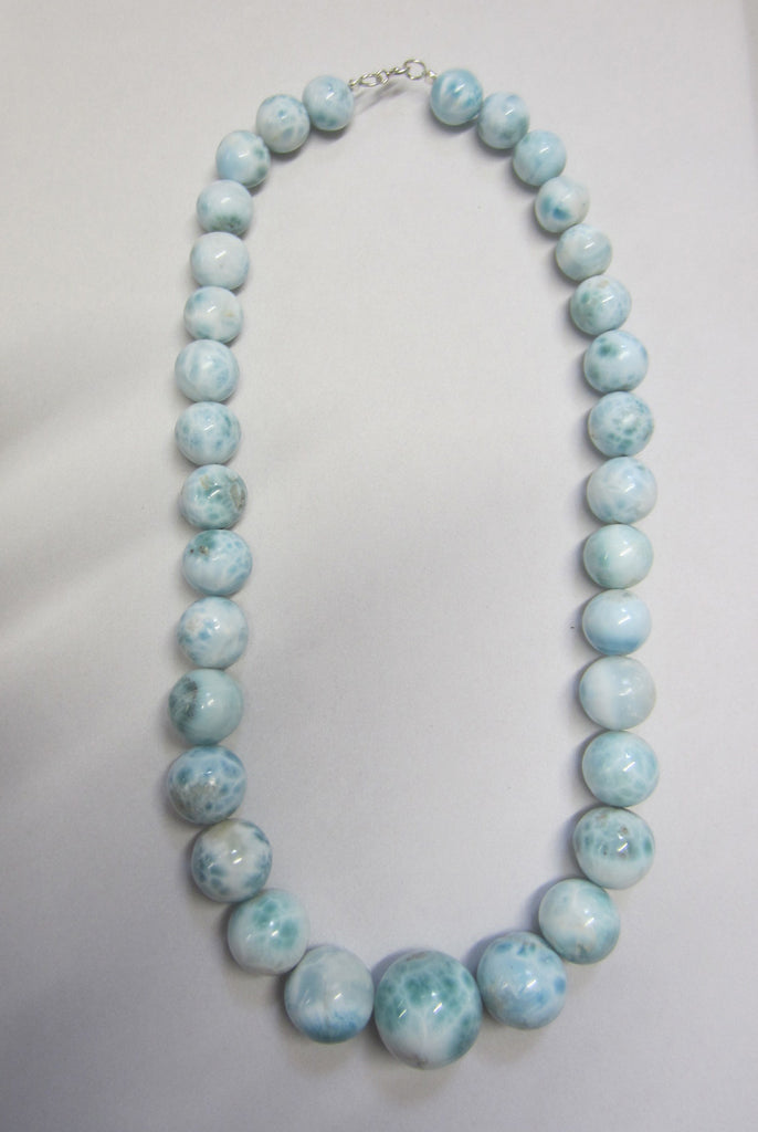 Round Beads Necklace from 12mm to 23mm sizes. High Grade Larimar Necklace.