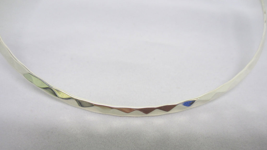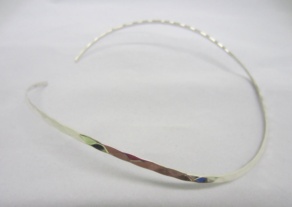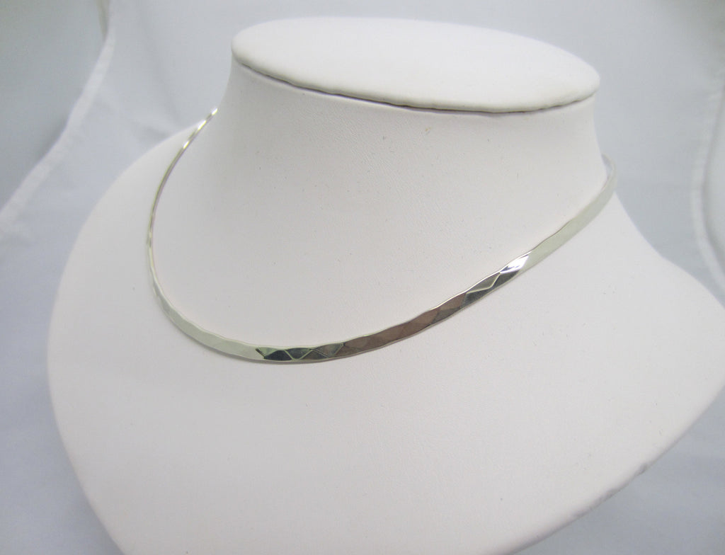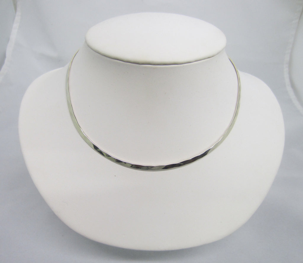Description: Sterling Silver Oval Shape Hammered Style Choker Collar Necklace Wire. Solid Sterling Silver. High Quality Collar