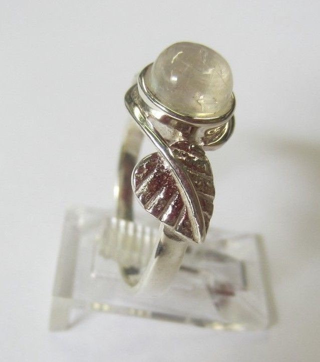 Description: Sterling Silver Ring with Rainbow Moonstone Gemstone. High Quality Solid Sterling Silver with leaves design.