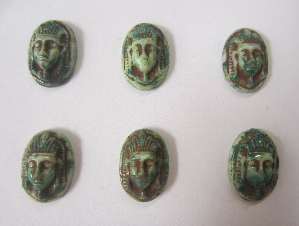 Description: Venetian Glass Art Deco Egyptian Cameo Face Cabochon. Cabochons will not be the actual pictures and might be in different color shades. Carved Face Cabochon. Art Deco Vintage Cabochons.