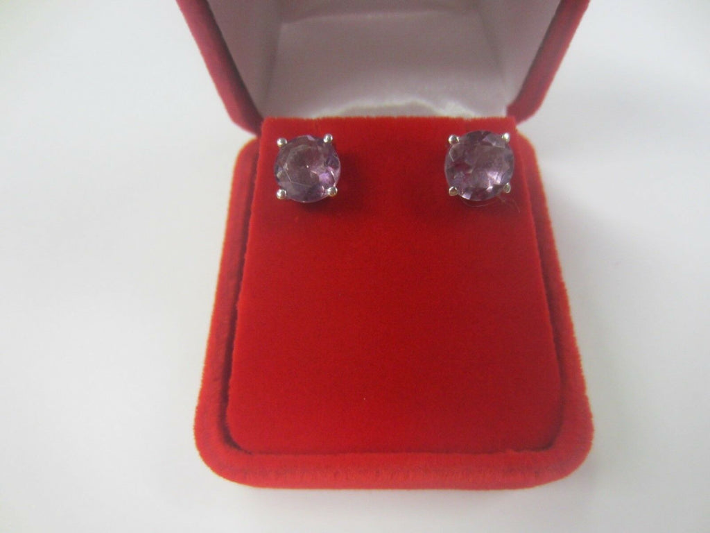 Item: Sterling Silver Round Faceted Amethyst Earrings
