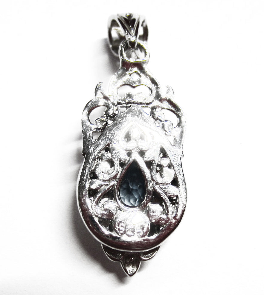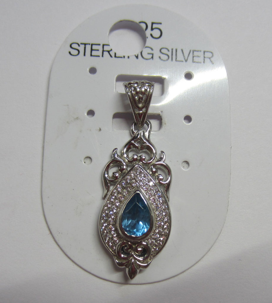 Solid 925 Sterling Silver Blue Topaz and CZ Pendant High Quality Jewelry