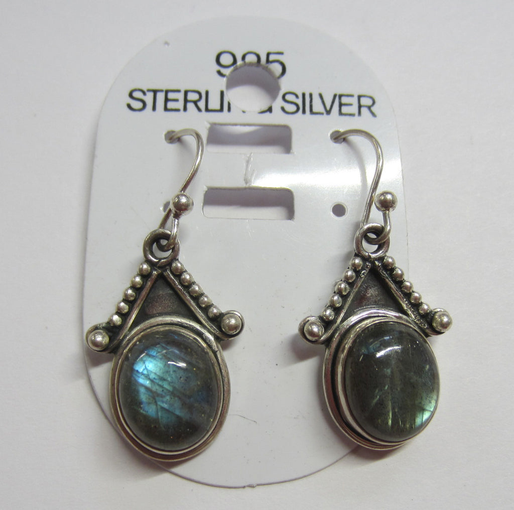 Description: Sterling Silver Silver Oval Calibrated Labradorite Earring. High Quality Solid 925 Sterling Silver Dangling Earring.